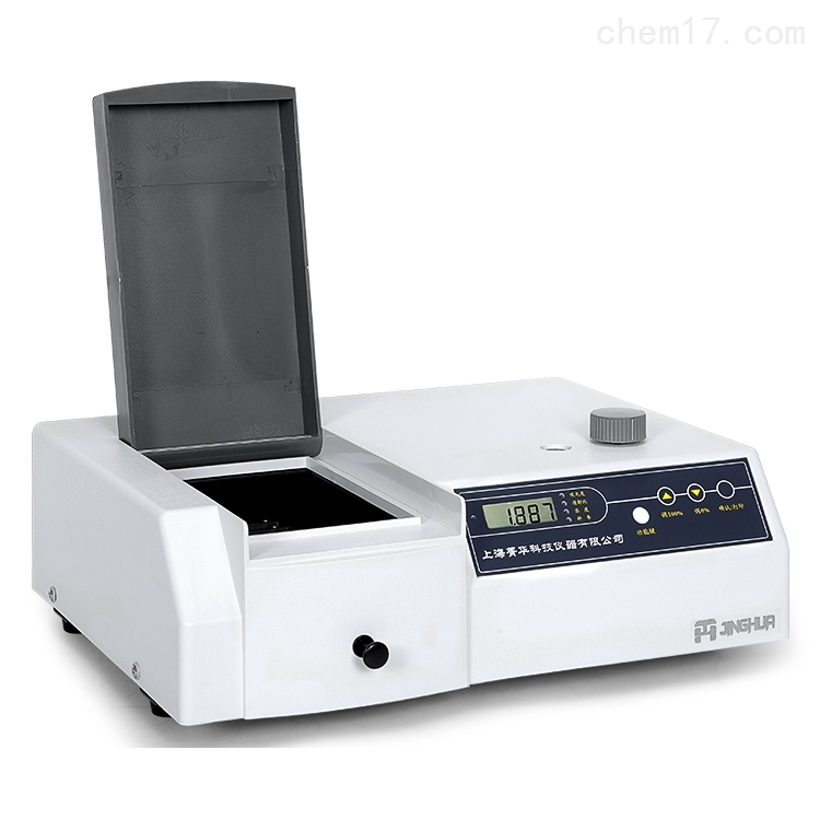 上海菁华 722可见分光光度计,波长范围:330~1000nm,波长准确度:±2nm,波长重复性:1nm,光谱带宽:4nm。采用低杂散光、高分辨率的光栅型单光束光路结构,具有良好的稳定性,重现性,光度线性和准确的测量读数。